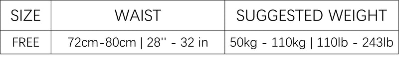 | FREE | 72cm-80cm | 28'' - 32 in | 50kg - 110kg | 110lb - 243lb |